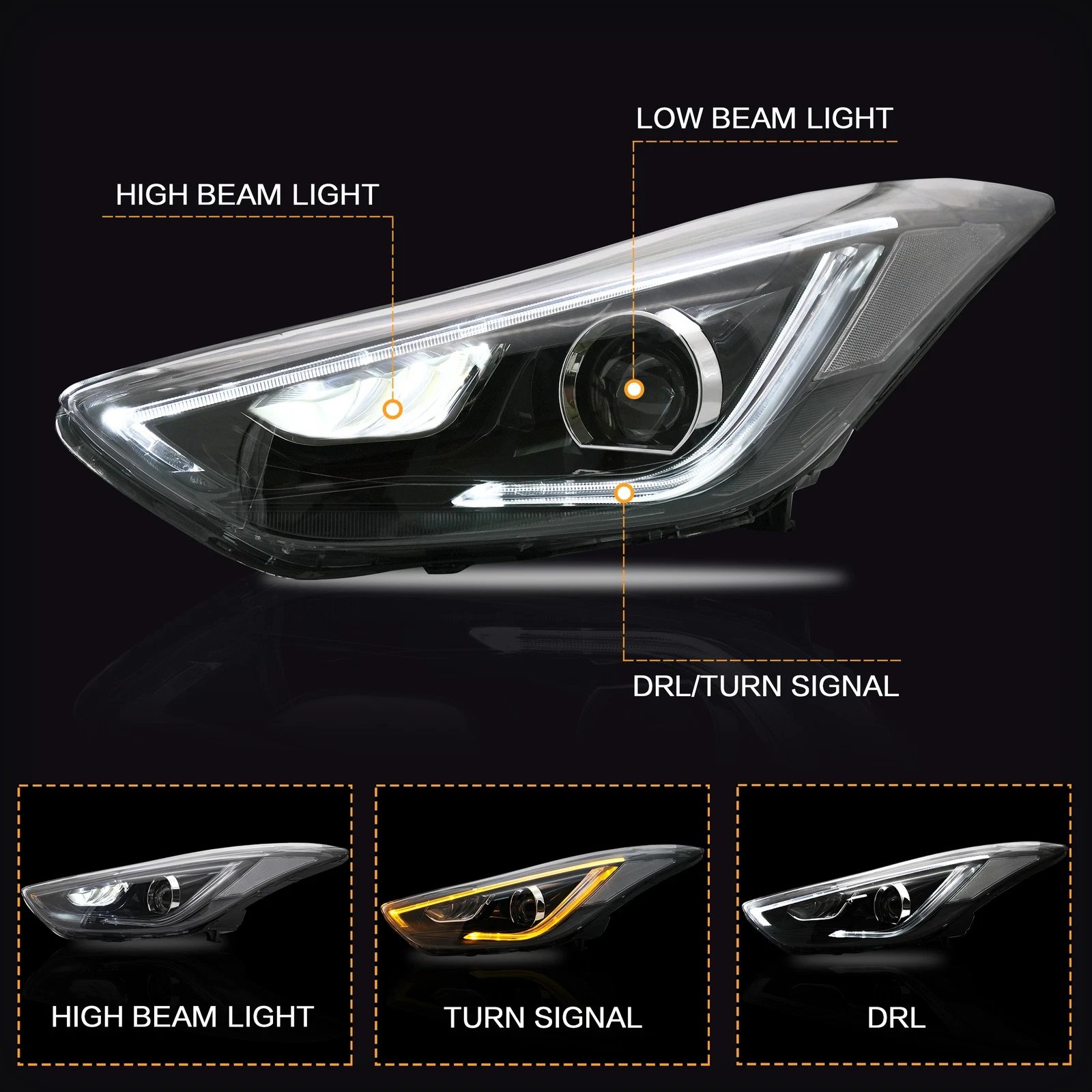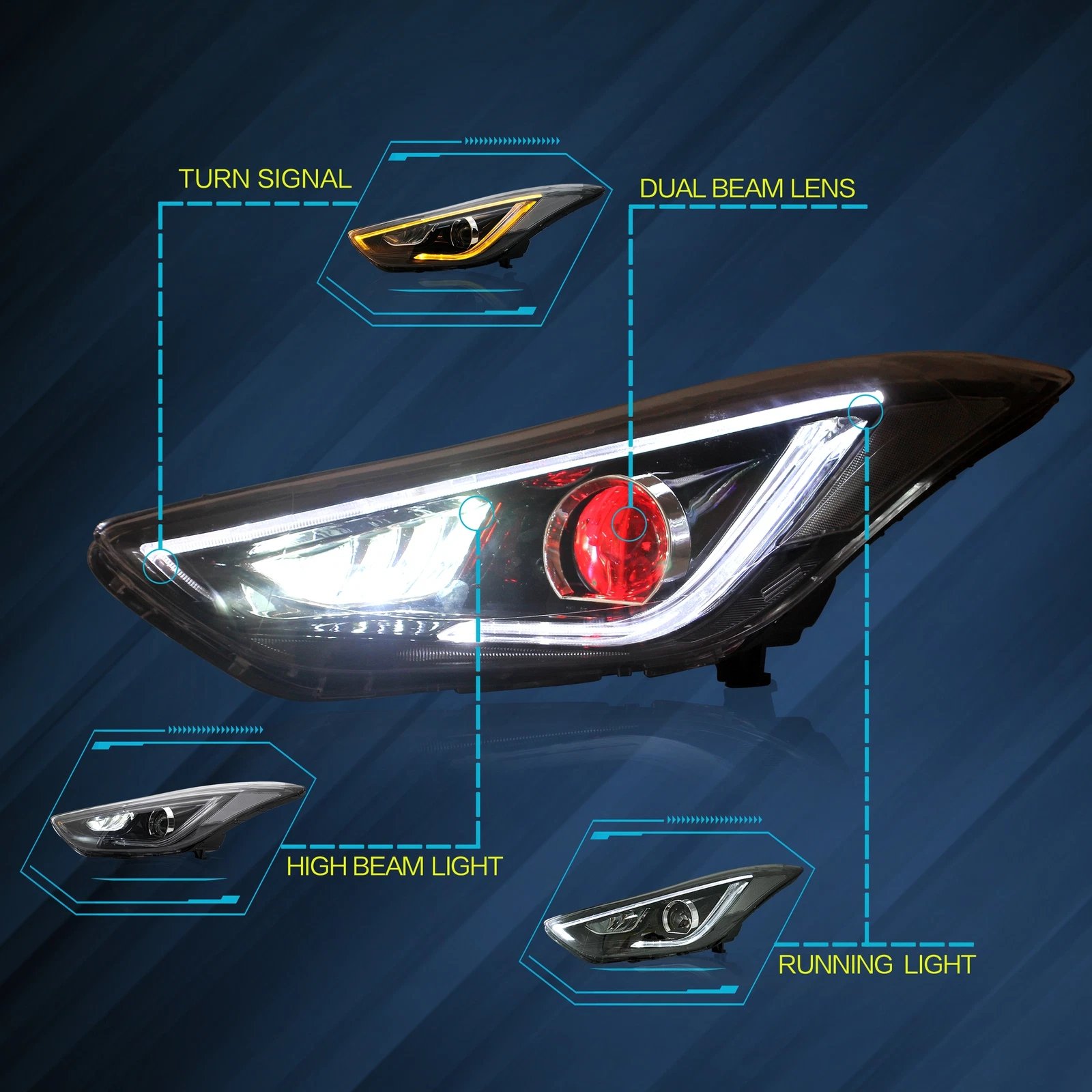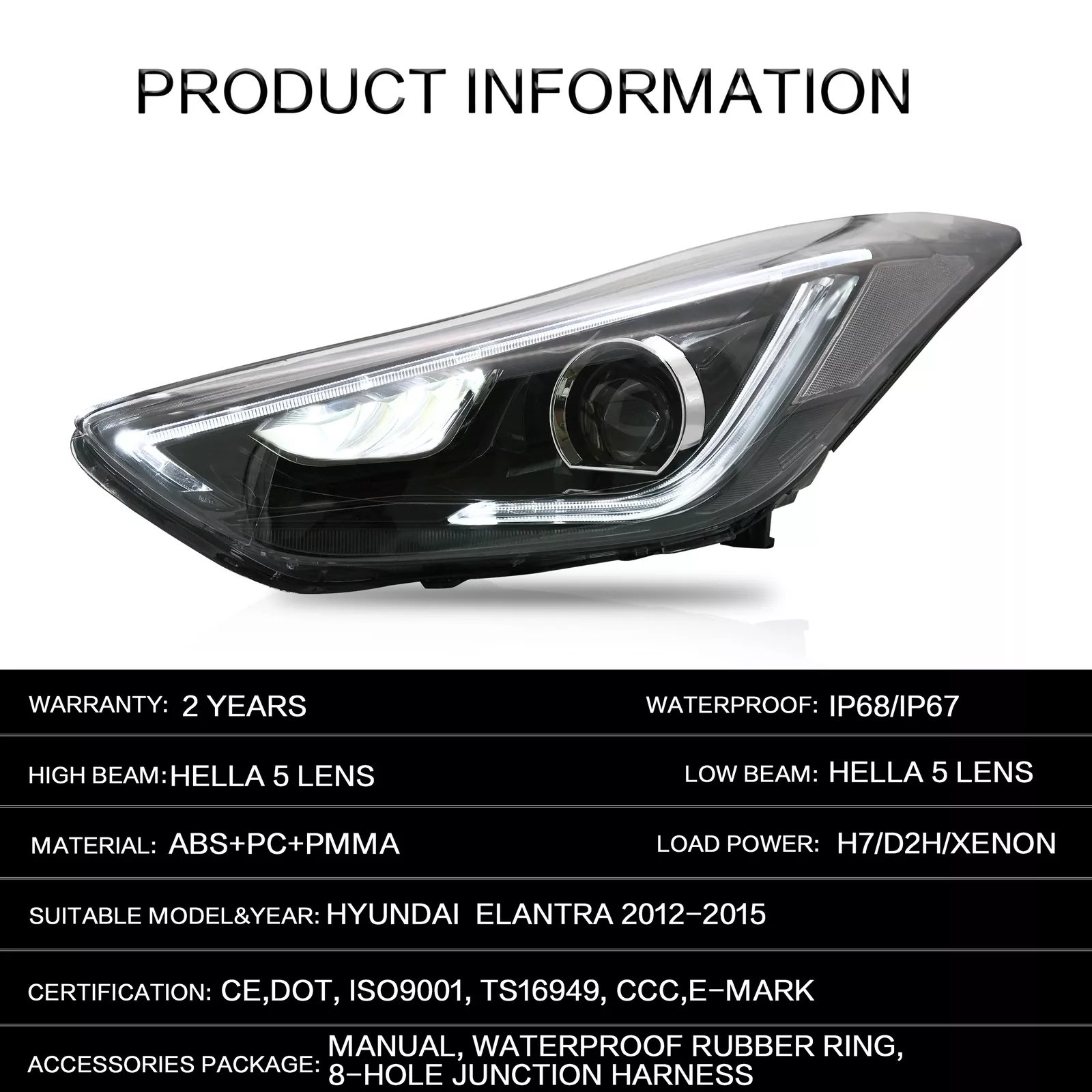 · For 2012-2015 Hyundai Elantra LED Projector Headlights