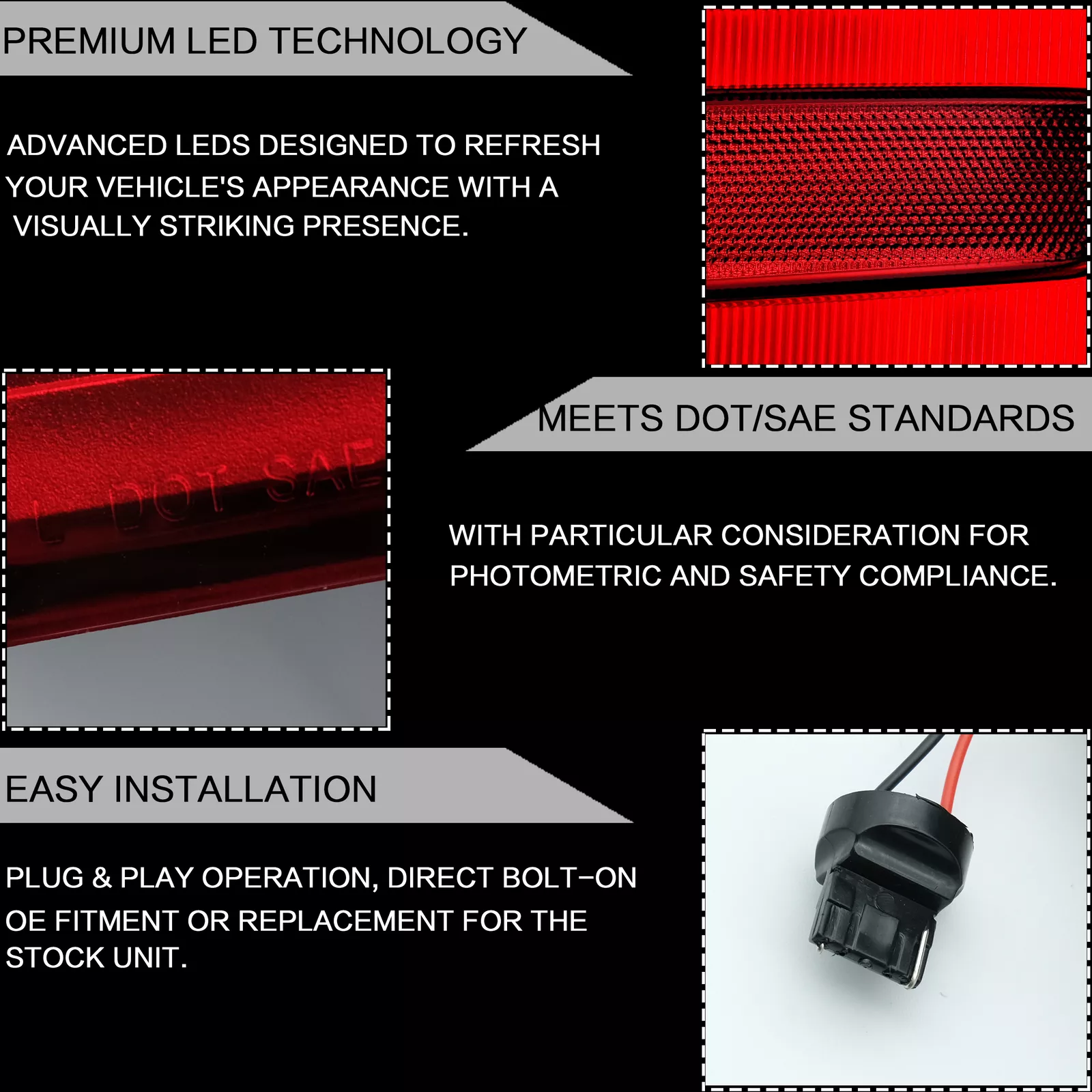 The items have the same connections and wires with the original taillights. Easy to install still professional installation is recommended.