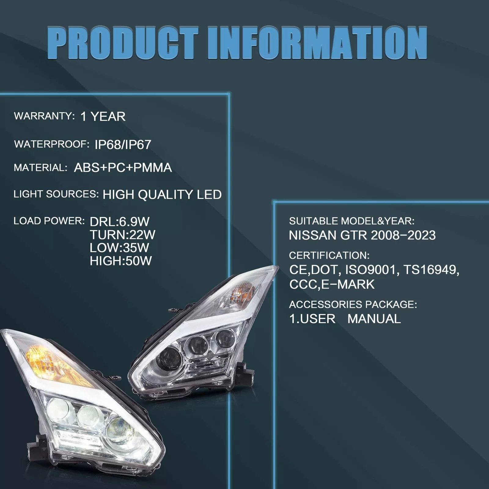 Vland 08-23 Nissan GT-R R35 LED Headlights