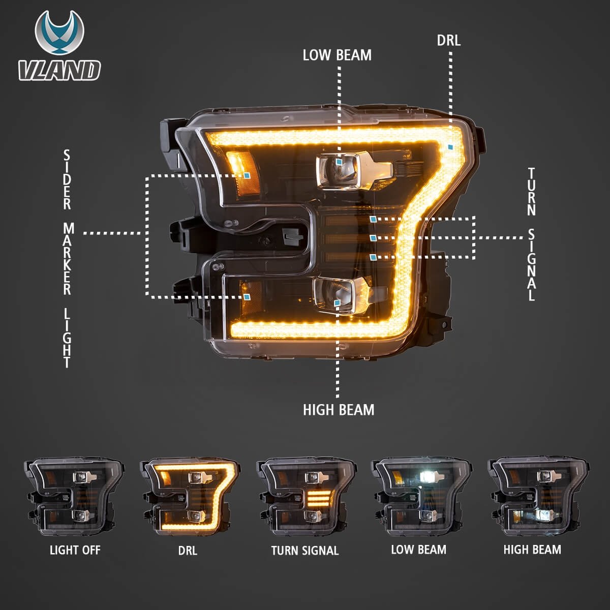 ☑ Functions: LED DRL, LED turn signal, Star-up Animation.