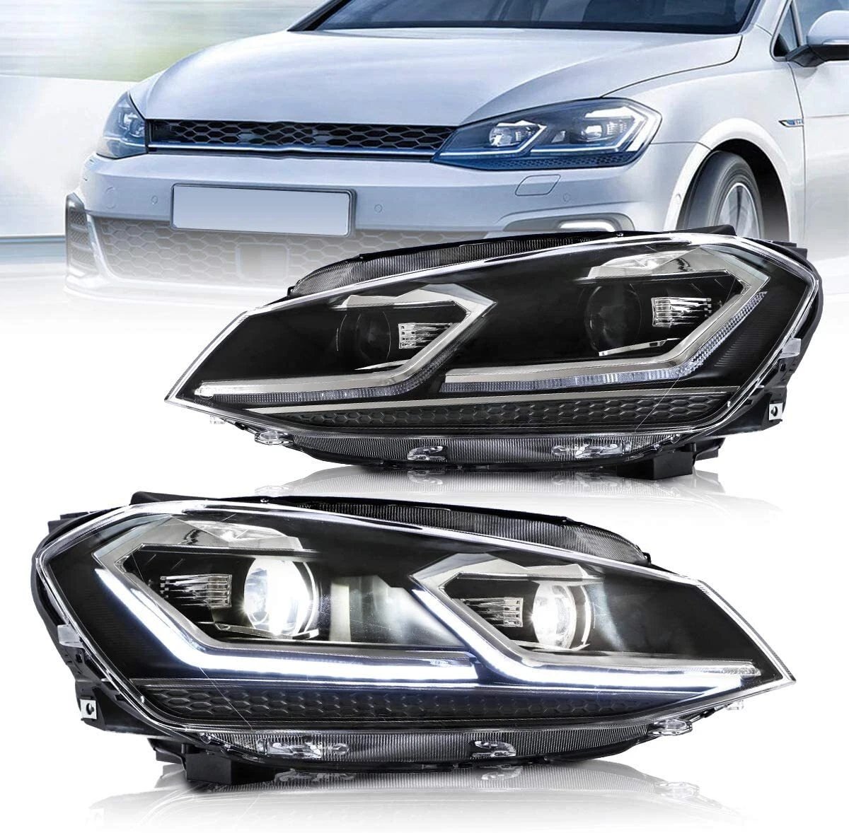 VLAND FULL LED Headlights For 2018-2021 VW Golf 7.5 MK7.5 (No Bulbs Required)