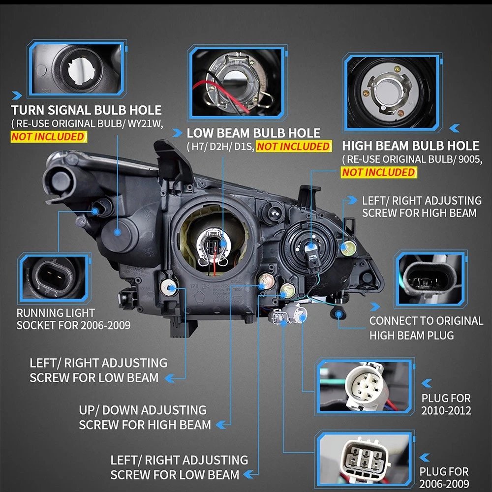 The items have the same connections and wires with the original headlights. It is plug and play, easy to install still professional installation is recommended.