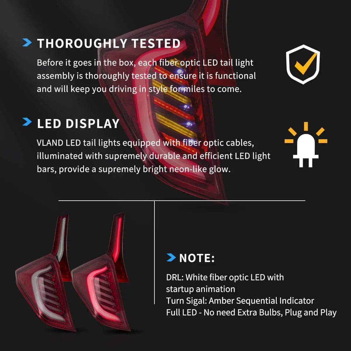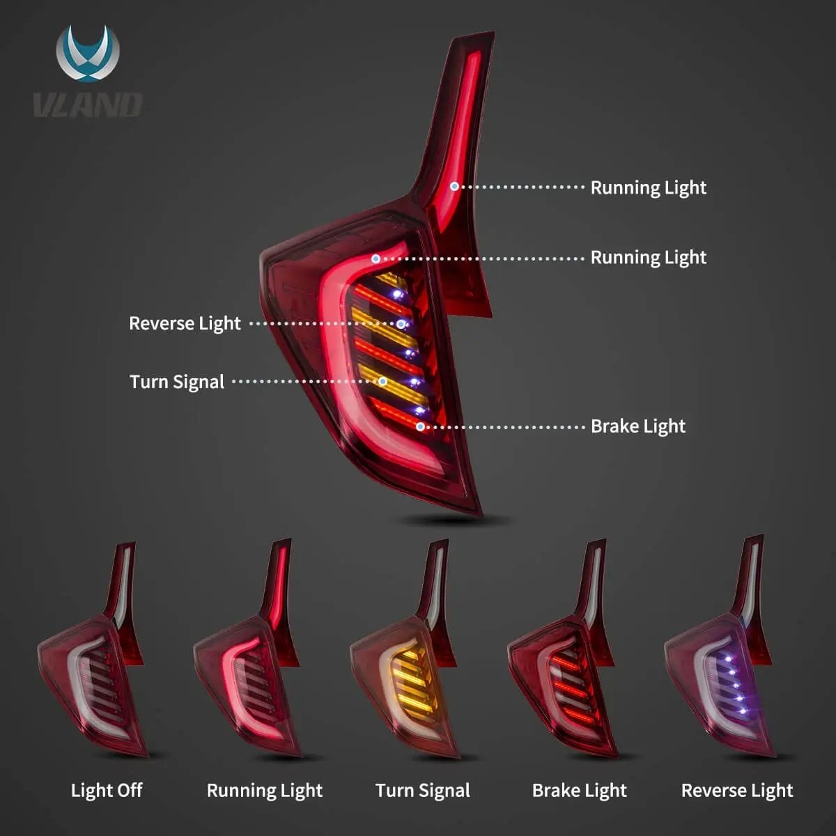 Vland LED Tail Lights for 13-20 Honda Fit/Jazz 3th Gen Hatchback