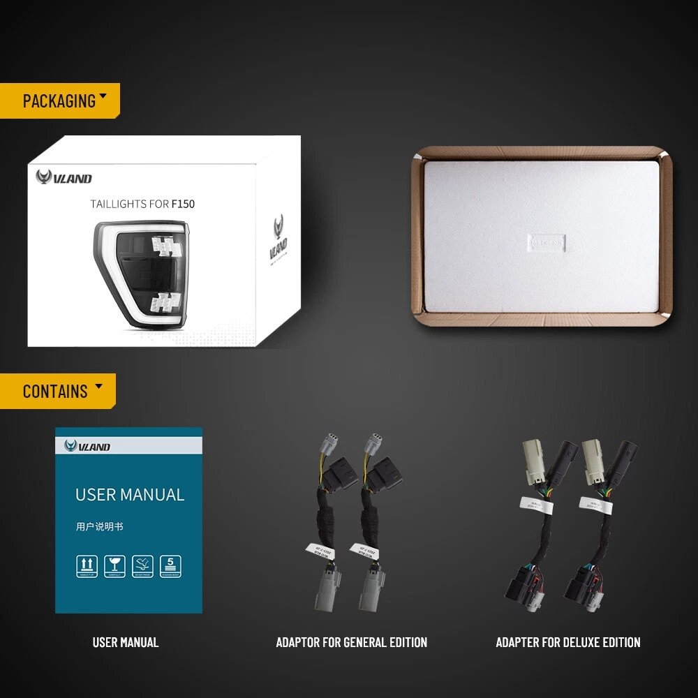 The package includes: 1 pair of headlights with left side & right side and 1 pair of rear lights with left side & right side.
