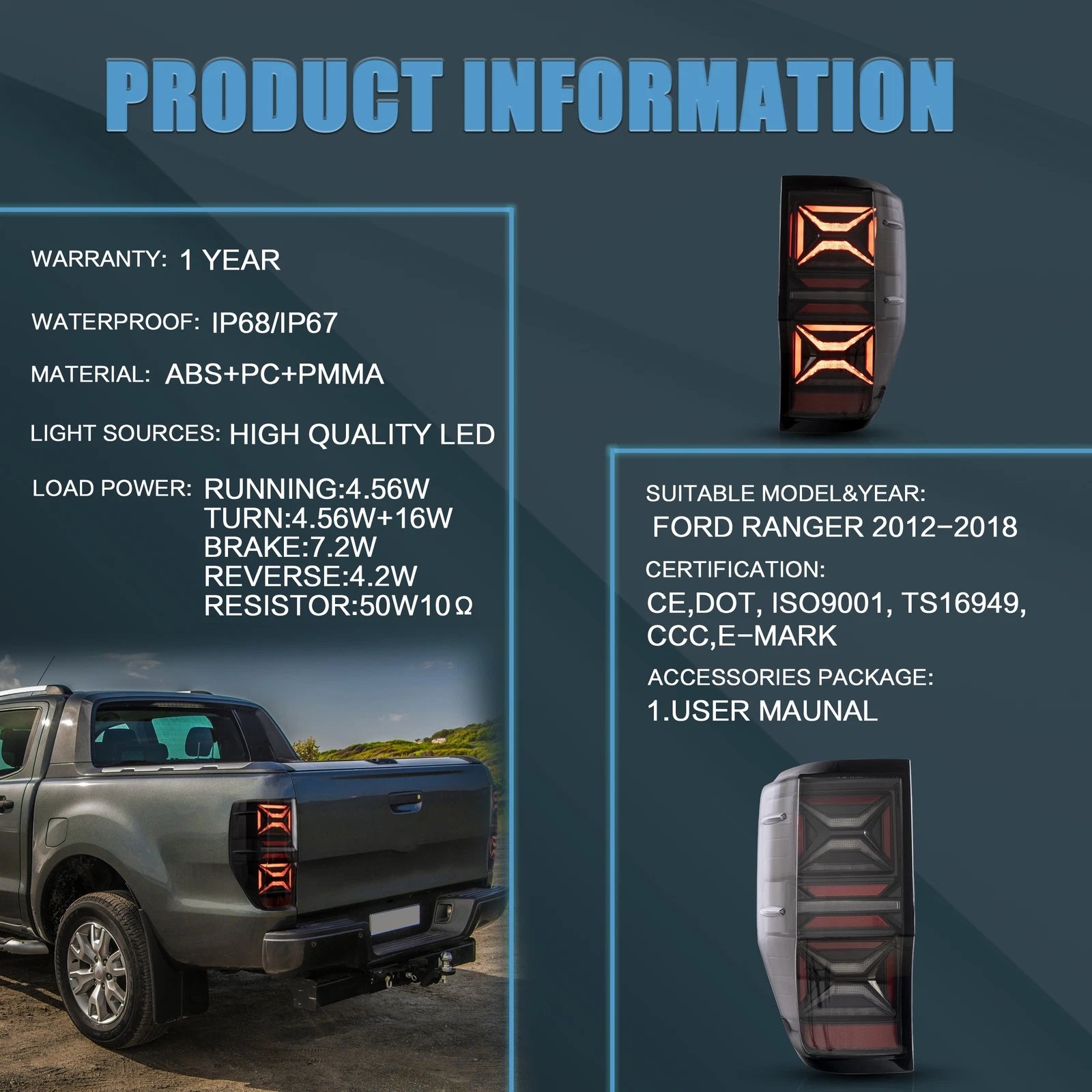 Including 1 pair of taillights (Left side & Right side)