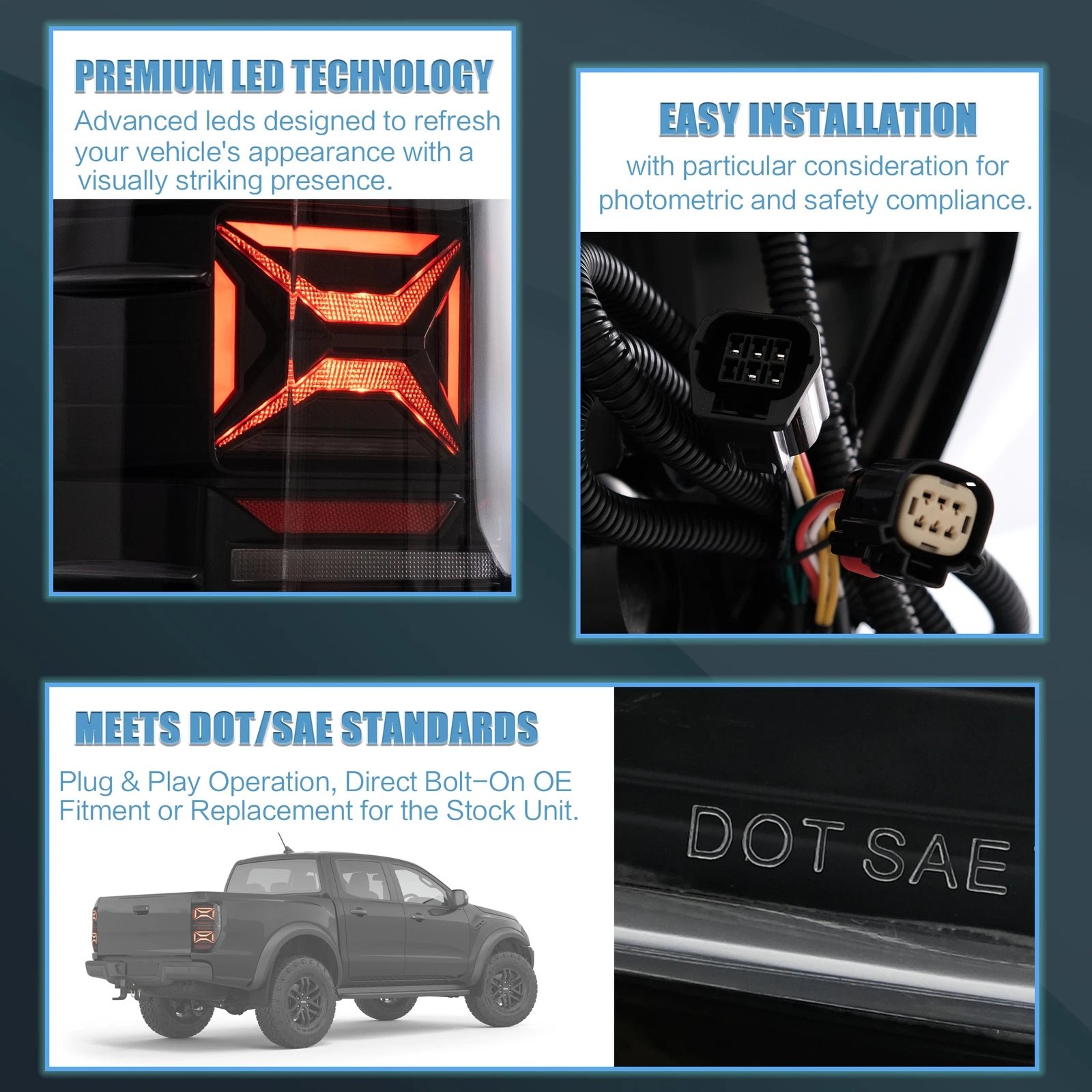 Fit For Ford Ranger Raptor T6 T7 T8 2012 2013 2014 2015 2016 2017 2018 2019 2020 Aftermarket Rear Tail Lights.