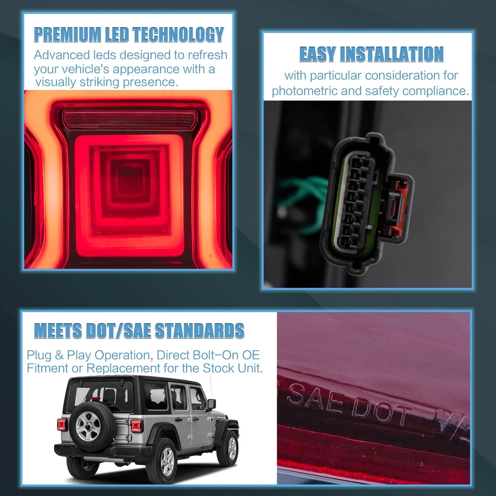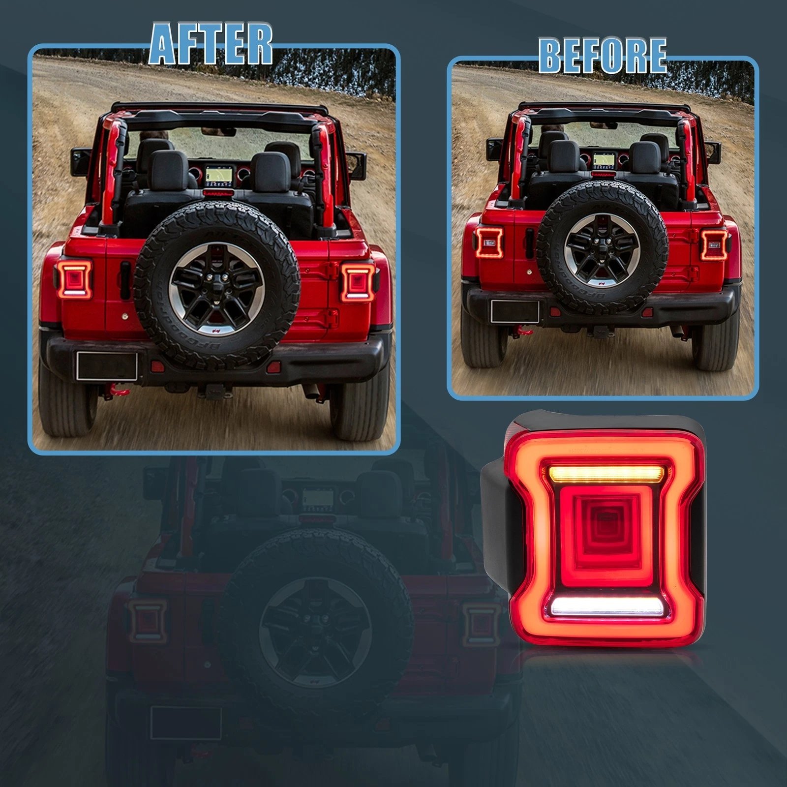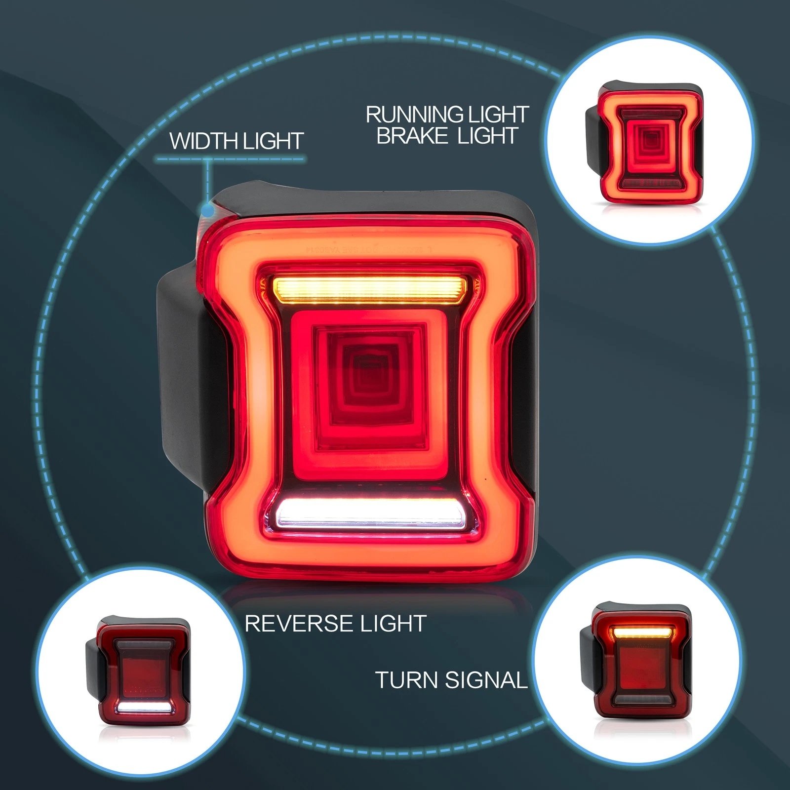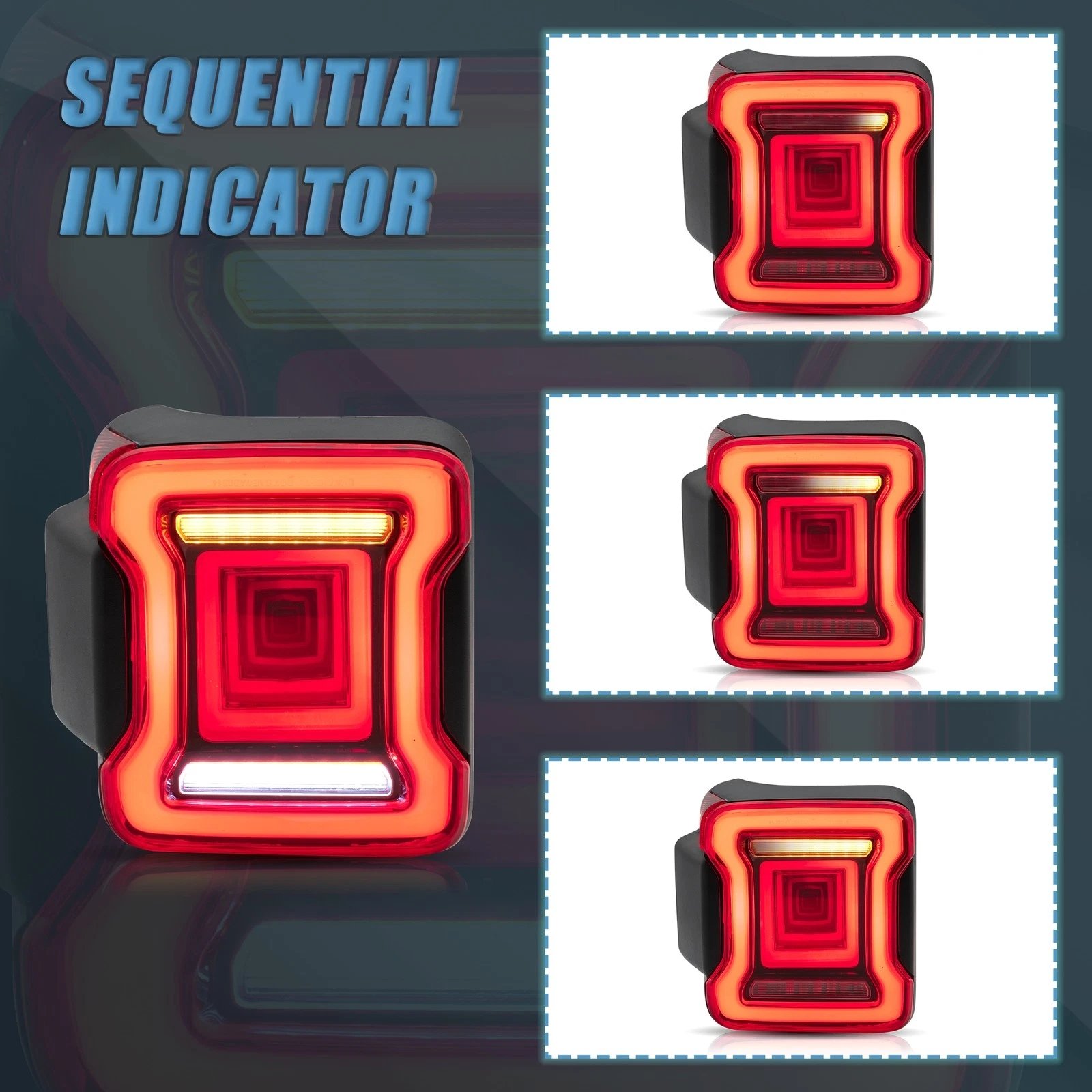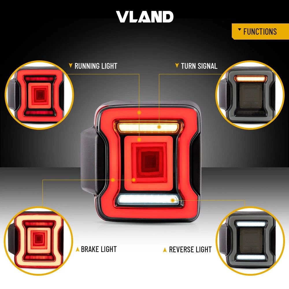 Functions: LED Start-UP Animation Running light(Red),LED Brake light(Red),LED Sequential Turn Signa(Yellow),LED Reverse light(White)